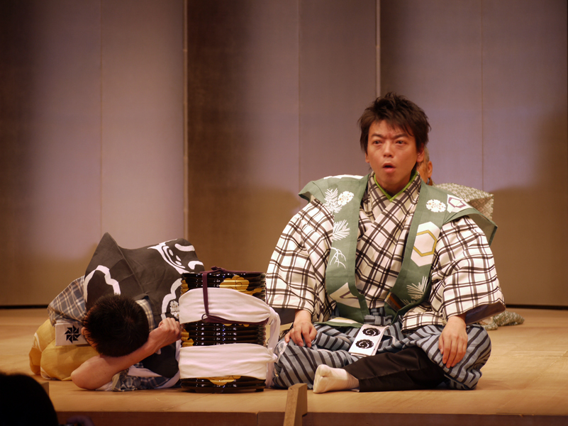 最初の演目は「茶壺」。お茶の発祥地、栂尾へ中国地方からお茶を買いに来た人を、すっぱ(いかさま師)が、だまし取ろうとしてもめている所へ仲裁役の目代が登場して・・・・というお話