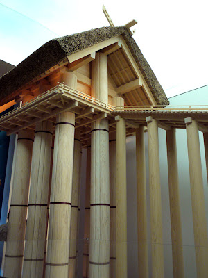 この高さを維持するためにはこの模型のように長〜い階段が必要になります。そこで考えられたのが109mにもおよぶ階段です。どうしてこんな不安定な形の神殿を作ったのでしょうか? 平安中期から鎌倉時代初めまでの200年間に7度も倒れているというのは当然のような気がします。(写真は古代出雲歴史博物館で撮ったものです)何にしても興味深い話で、神話の世界と共に、空中神殿がそびえたつ空想が膨らみました。